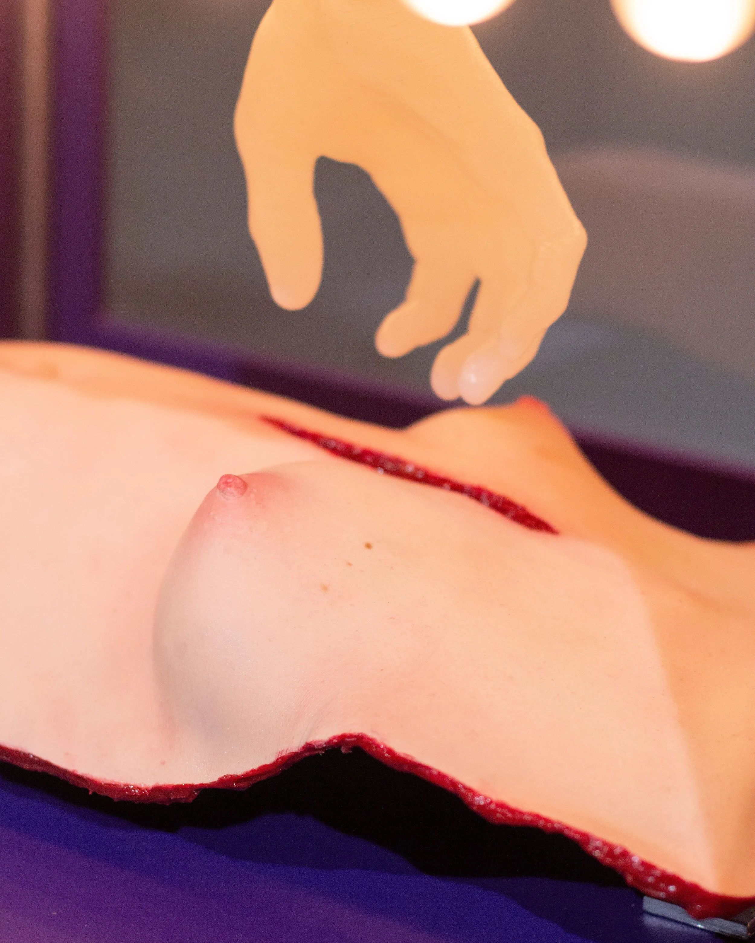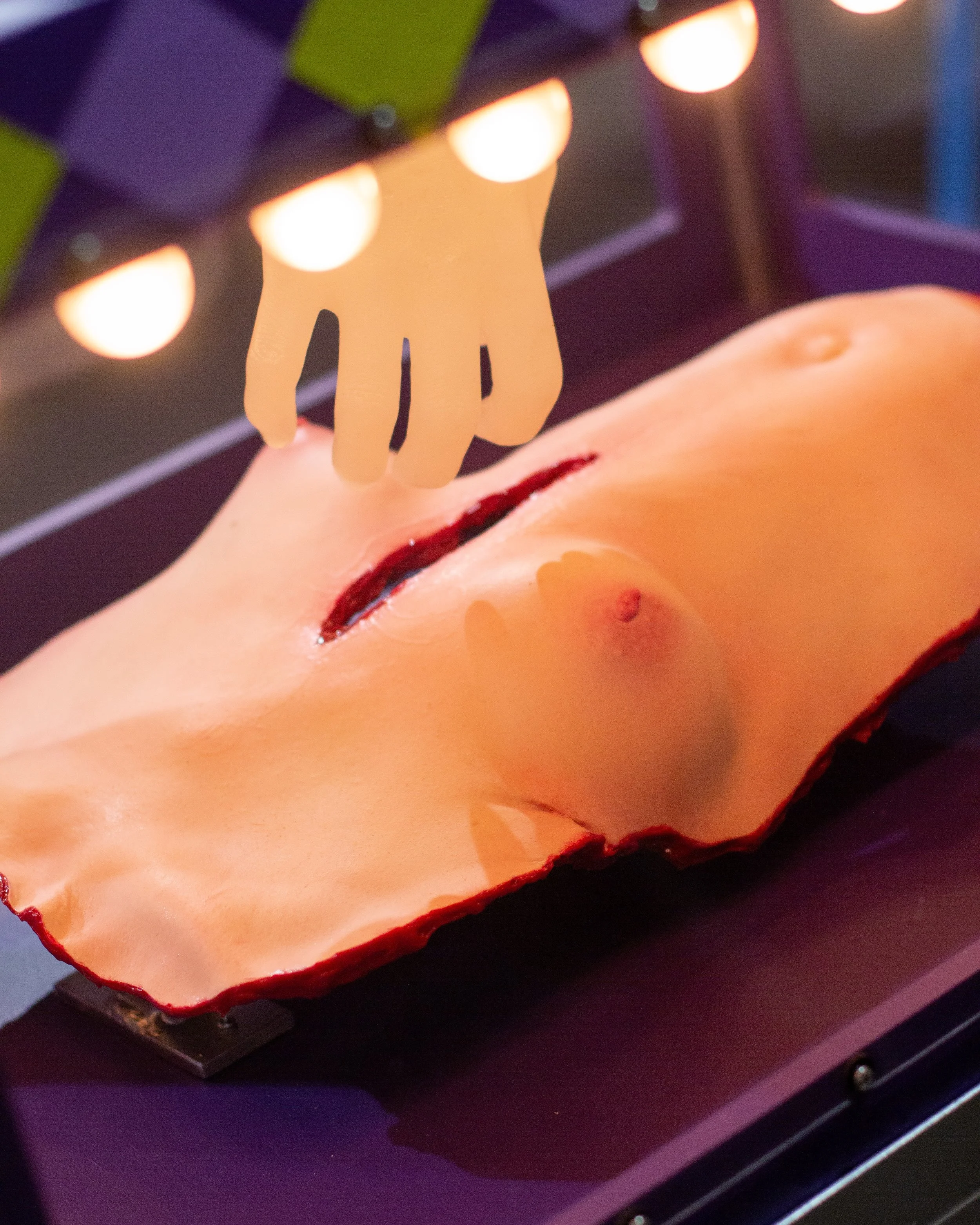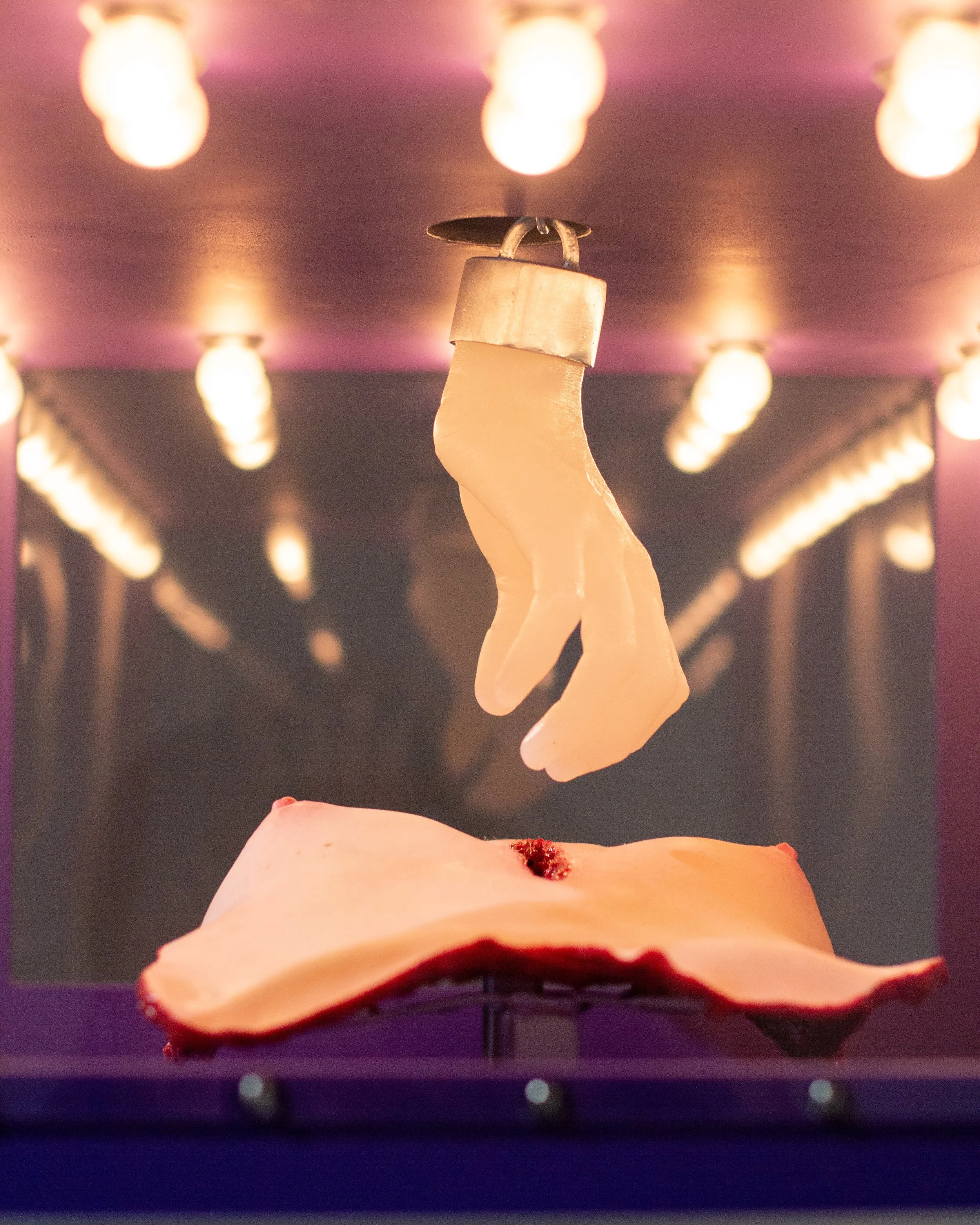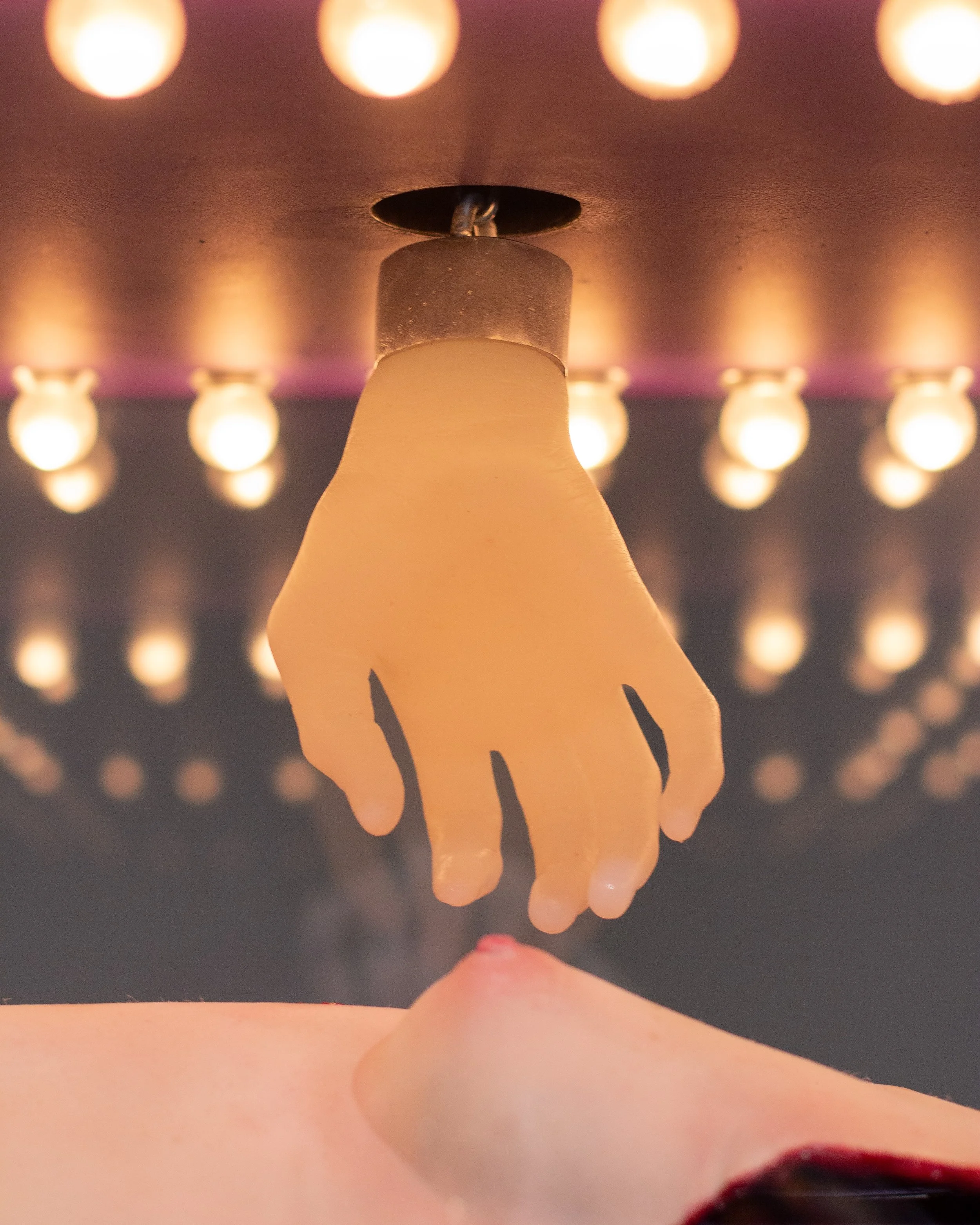 Silicone, plywood, steel, polycarbonate, latex acrylic paint, lightbulbs, chain